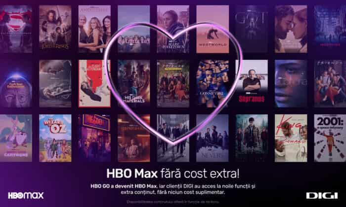 Toți clienții DIGI care au activ abonamentul TV cu extraopțiunea HBO sau MAXPAK vor beneficia, gratuit, de avantajele serviciului HBO Max;