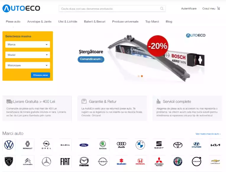 Autoeco este marca inregistrata a Motoreco Parts S.R.L. Intra pe rubricile magazinului nostru online si alege piesele auto, anvelopele, uleiurile, acumulatorii sau becurile de care ai nevoie!