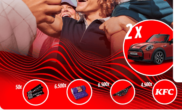 Poți câștiga instant unul dintre cele 45.000 meniuri KFC 5 Hot Wing, garantat unul dintre cele 6.500 prosoape de plajă sau una dintre cele 6.500 borsete și prin tragere la sorți unul dintre cele 50 bilete duble la Untold sau una dintre cele 2 mașini Mini Cooper Cabrio.