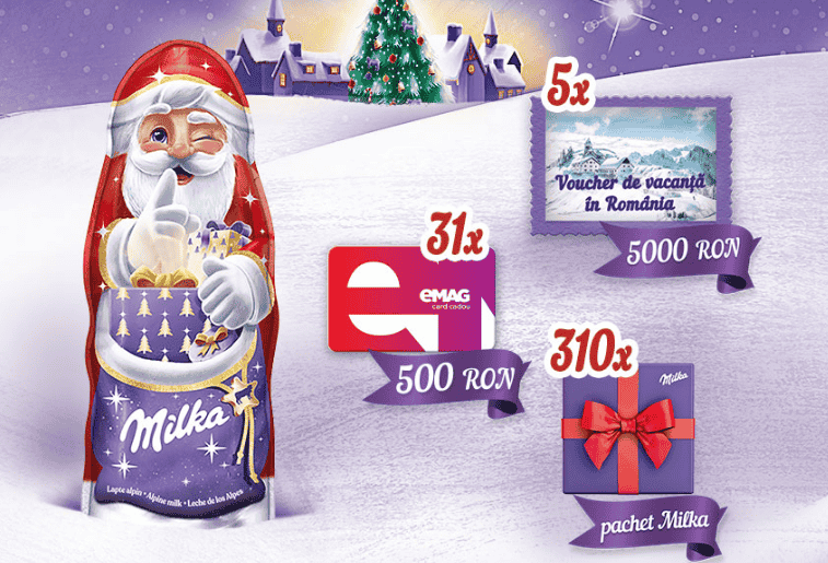 Câștigă 5 vouchere de vacanță în valoare de 5.000 lei fiecare, 31 vouchere eMAG în valoare de 500 lei fiecare și 310 pachete cadou cu produse Milka!