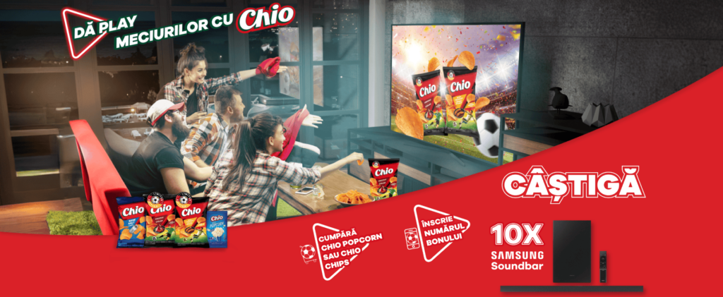 Cumpără orice produs Chio Popcorn sau Chio Chips din magazinele Penny, scanează cardul de loialitate Penny la casa de marcat și poți câștiga prin tragere la sorți unul dintre cele 5 televizoare LED Smart SAMSUNG 50CU8572 Ultra HD 4K HDR 125cm.