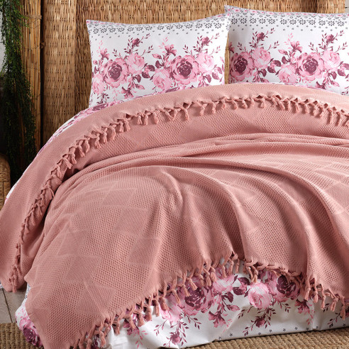 Bumbacul ranforce este materialul folosit în fabricarea acestei lenjerii, așadar, va fi foarte confortabilă indiferent de anotimp. Densitatea e de 115 g/mp. Pilota se închide cu nasturi, iar fețele de pernă prin suprapunere.