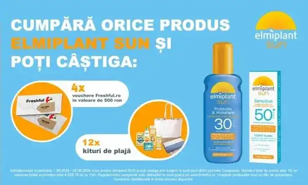 Achizitioneaza orice produs elmiplant SUN de la Freshful din aplicația Freshful sau din magazinul online Freshful si intra in tragerea la sorți.