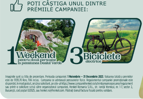 *Produsele participante sunt urmatoarele marci Henkel: Persil, Perwol, Silan, Pur, K2R, Clin, Somat, Fa, Schauma, Barnangen, NatureBox, Gliss, Taft, și Got2B.