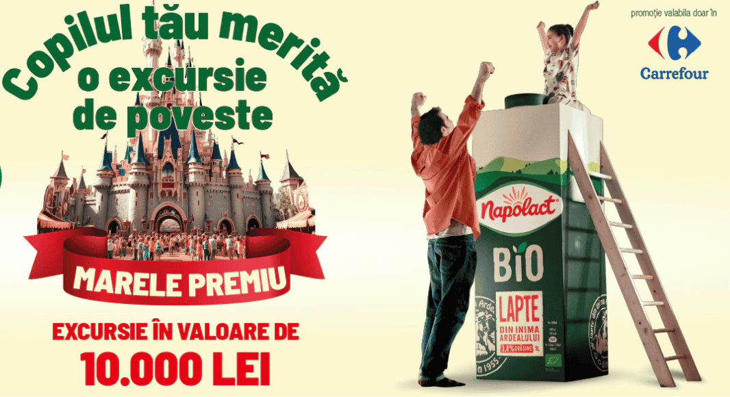 Achizitioneaza orice produs Napolact BIO din magazinele Carrefour si înscrie bonul fiscal împreuna cu datele personale în formularul de concurs de pe napolact.ro.