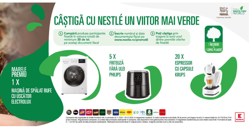 Achizitioneaza produse participante Nestle în valoare de minim 30 de lei din magazinele Kaufland, înscrie bonul fiscal și data achiziției împreuna cu datele personale în formularul de concurs de pe nestle.ro.