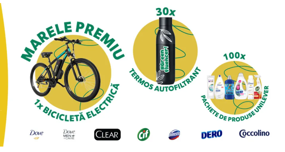 1 x bicicleta electrica pliabila ENGWE Engine Pro, 30 x termos autofiltrant, 100 x pachet cu produse Unilever