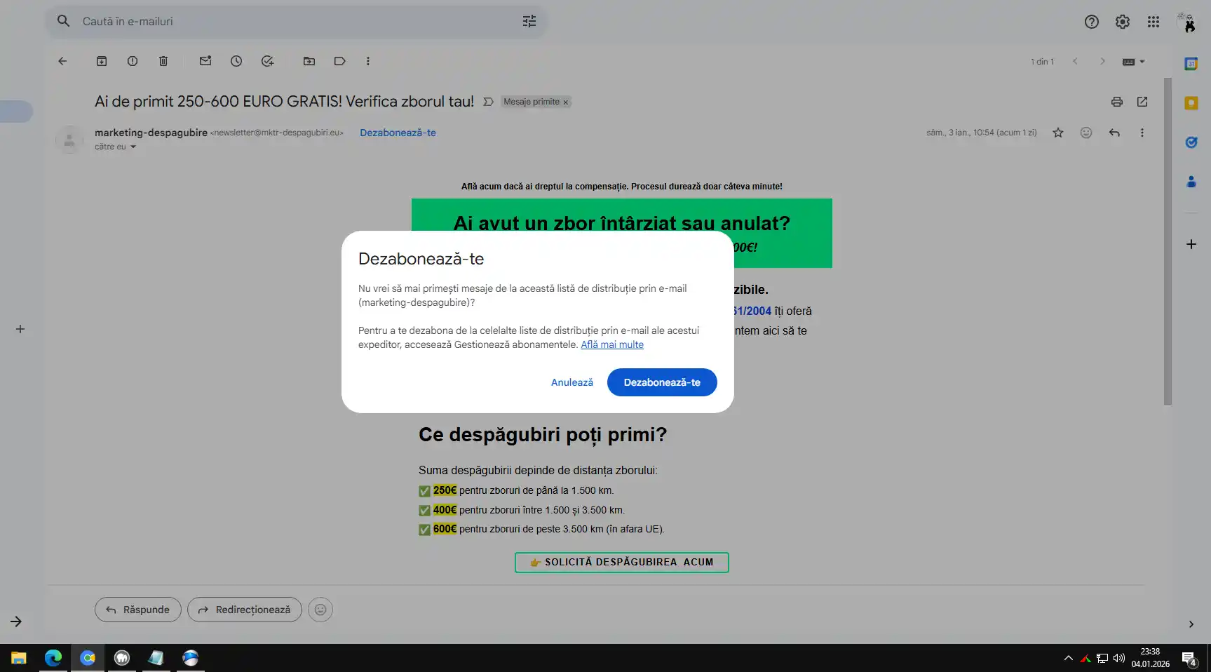 de aproximativ 2 luni primesc și eu mesaje de la această firmă. În prima lună primeam cam un email la 5 zile, am dat unsubscribe, de atunci am început să primesc zilnic. Ce trebuie să fac să nu mai primesc mesaje de la ei?
