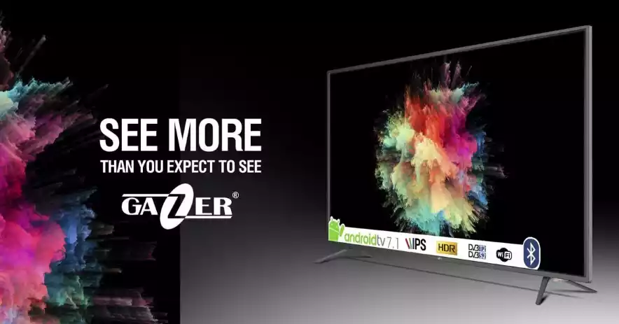 Smart TV cu sistem de operare Android 7.1, diagonală a ecranului de 43″, panou IPS True RGB Ultra HD 4K cu tehnologie HDR, tehnologie Dolby Audio și tunere DVB-T2/DVB-S2/DVB-C. Modelul dispune de module Wi-Fi și Bluetooth 4.0 integrate (cu suport pentru acustică externă și control vocal). Platforma Smart este susținută de un procesor cu 4 nuclee A53 pe 64 biți, o memorie RAM de 2 GB și o memorie flash de 16 GB. Televizorul Gazer poate fi controlat și prin intermediul aplicației mobile special dezvoltate, ce permite inclusiv streaming-ul de conținut sau duplicarea ecranului smartphone-ului.