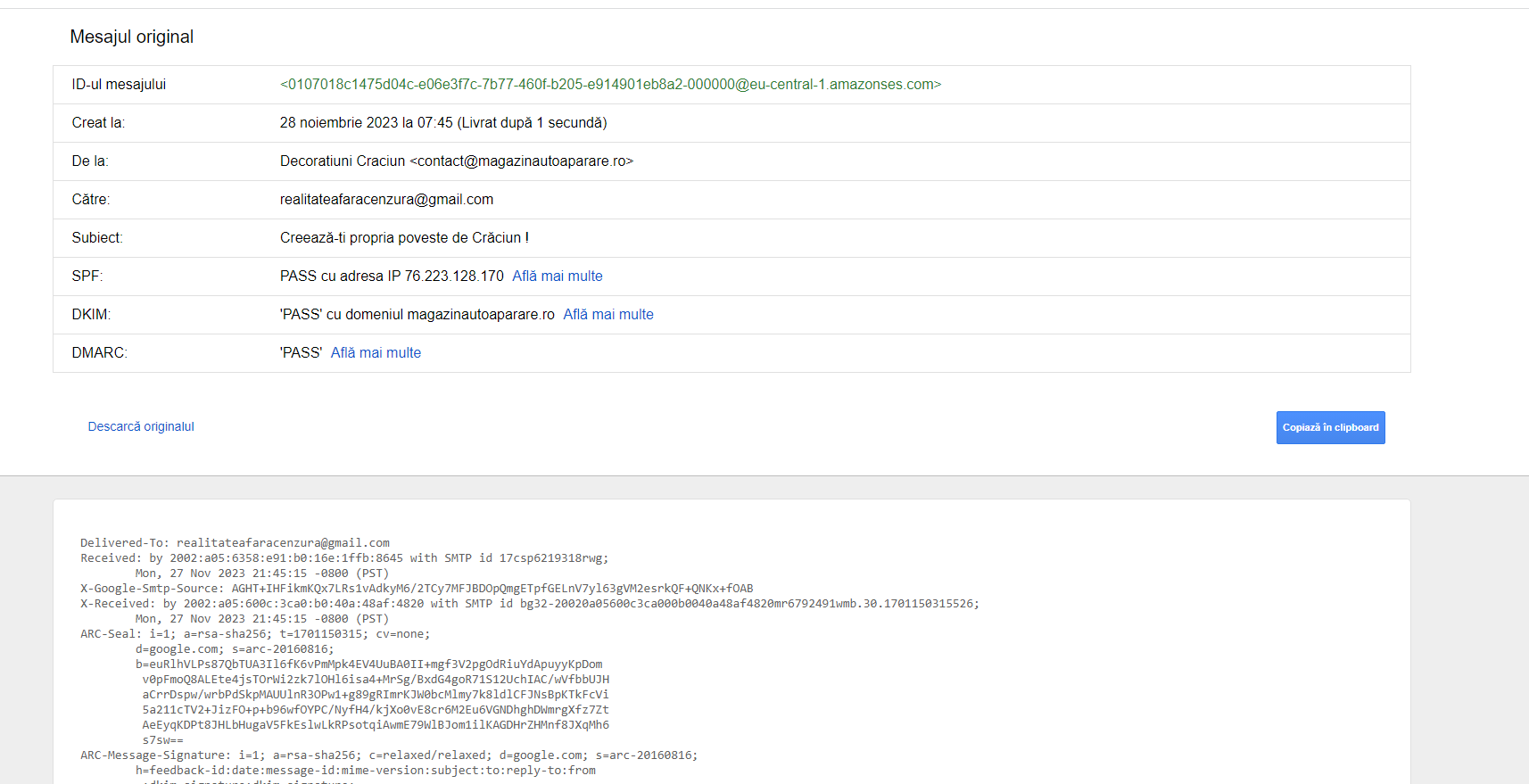 dmarc=pass (p=NONE sp=NONE dis=NONE) header.from=magazinautoaparare.ro