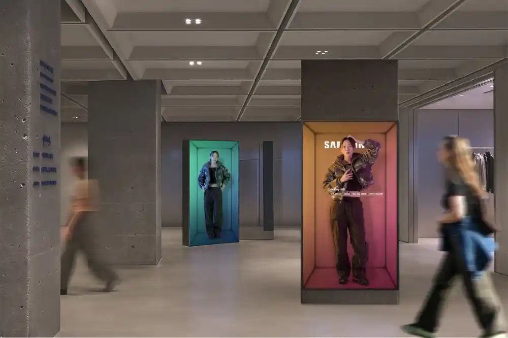 - Spatial Signage: un ecran 3D revoluționar, care nu necesită ochelari, oferind o experiență captivantă, bazată pe tehnologia brevetată 3D Plate de la Samsung. Cu un profil subțire de doar 52 mm[1], această soluție inovatoare se integrează perfect în medii comerciale, cum ar fi magazinele de retail, expozițiile și locurile de divertisment, redefinind modul în care publicul interacționează cu semnalizarea digitală. Optica sa de ultimă generație și ingineria de precizie depășesc limitele tehnologiei, oferind o experiență vizuală de înaltă calitate care captivează spectatorii și stabilește noi standarde pentru afișajele de nouă generație.\