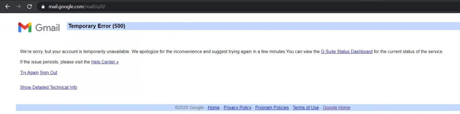 În mod similar, utilizatorii nu pot, de asemenea, să trimită sau să acceseze e-mailuri utilizând Gmail pentru Android și iOS. Accesul POP3 la Gmail și posibilitatea de a accesa site-ul web Gmail sunt afectate, așa cum se arată în captura de ecran de mai jos.